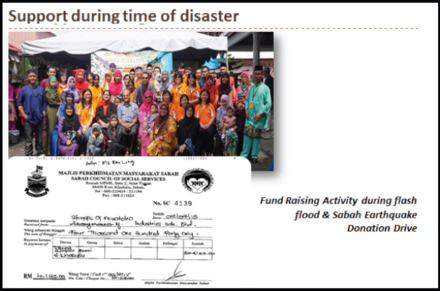 We wish to support the communities that we operate in. One of the most important initiatives is to help our neighbours in their time of need. When there are natural disasters in our neighbourhood, we raise money and donate basic necessities to support victims of natural disasters.